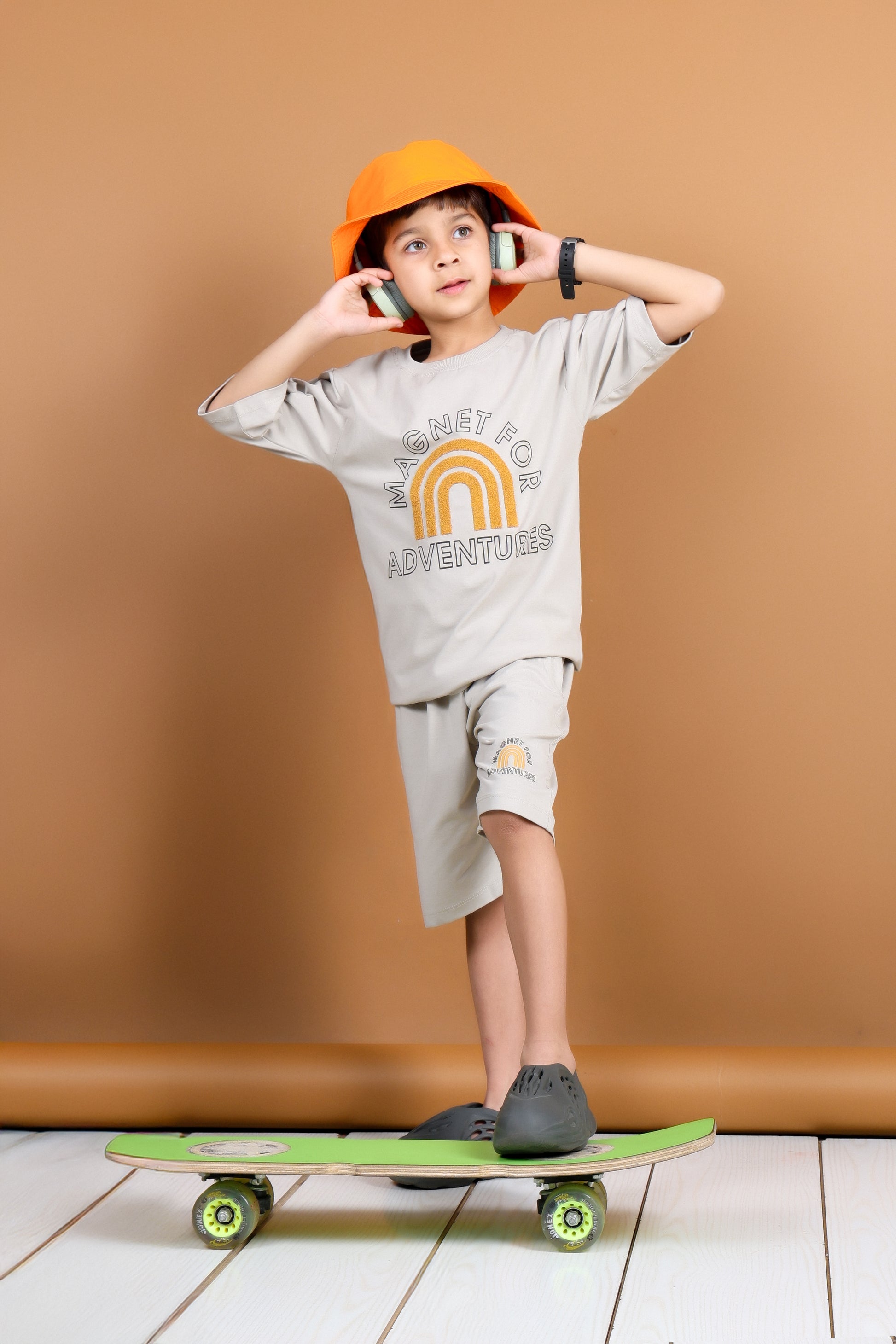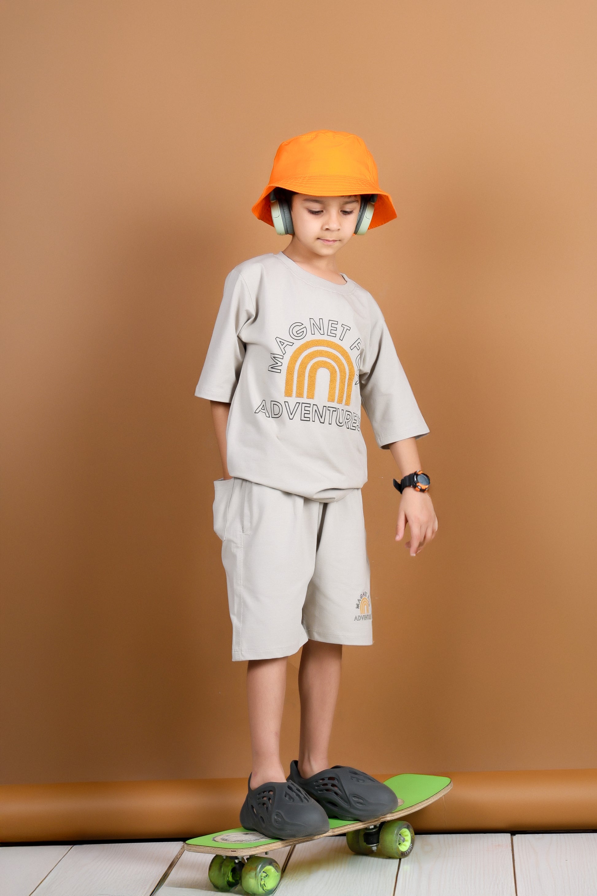 Fuel their imagination and celebrate their fearless spirit with the Magnet for Adventures co-ord set. Whether it's a backyard expedition or a new summer destination, this 3-piece outfit is made to move with them. Featuring a breathable top, easy-fit shorts, and a matching bucket hat, it’s crafted from 100% premium cotton that’s soft, sturdy, and ready for action.